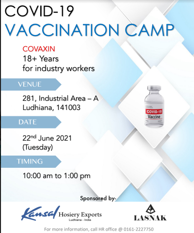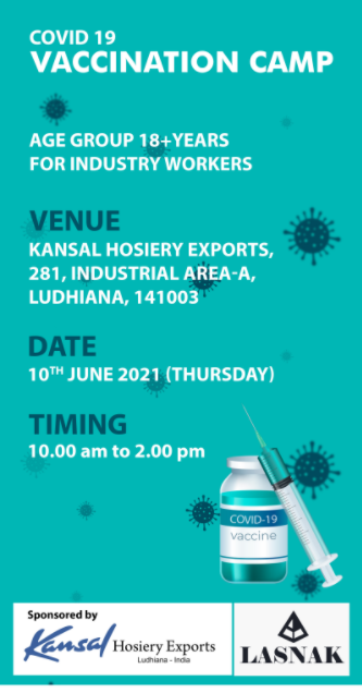 Kansal Hosiery Exports and Lasnak is conducting a Free Covid Vaccination Camp for Second Dose of…