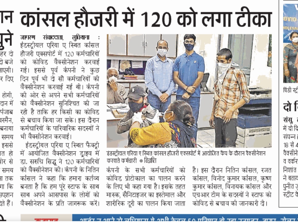 Situated in Industrial area- A, Ludhiana, Kansal Hosiery had its 120 workers vaccinated with Covaxine on…